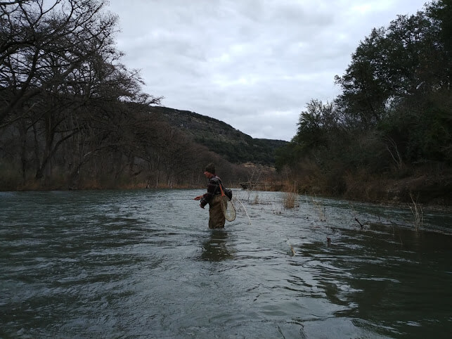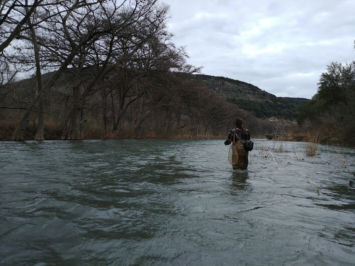 We begin Season Two and the Quest for Elite with a trip to the Guadalupe. What starts out as a low-hanging-fruit attempt at a Big Fish Award, turns into a struggle for survival in 700CFS flows that make every move a struggle, and every presentation a dicey prospect. At lunch afterward at the amazing Granny D’s in Canyon City, the Christmas decorations suggest that there are at least four waitresses there named Brittany.